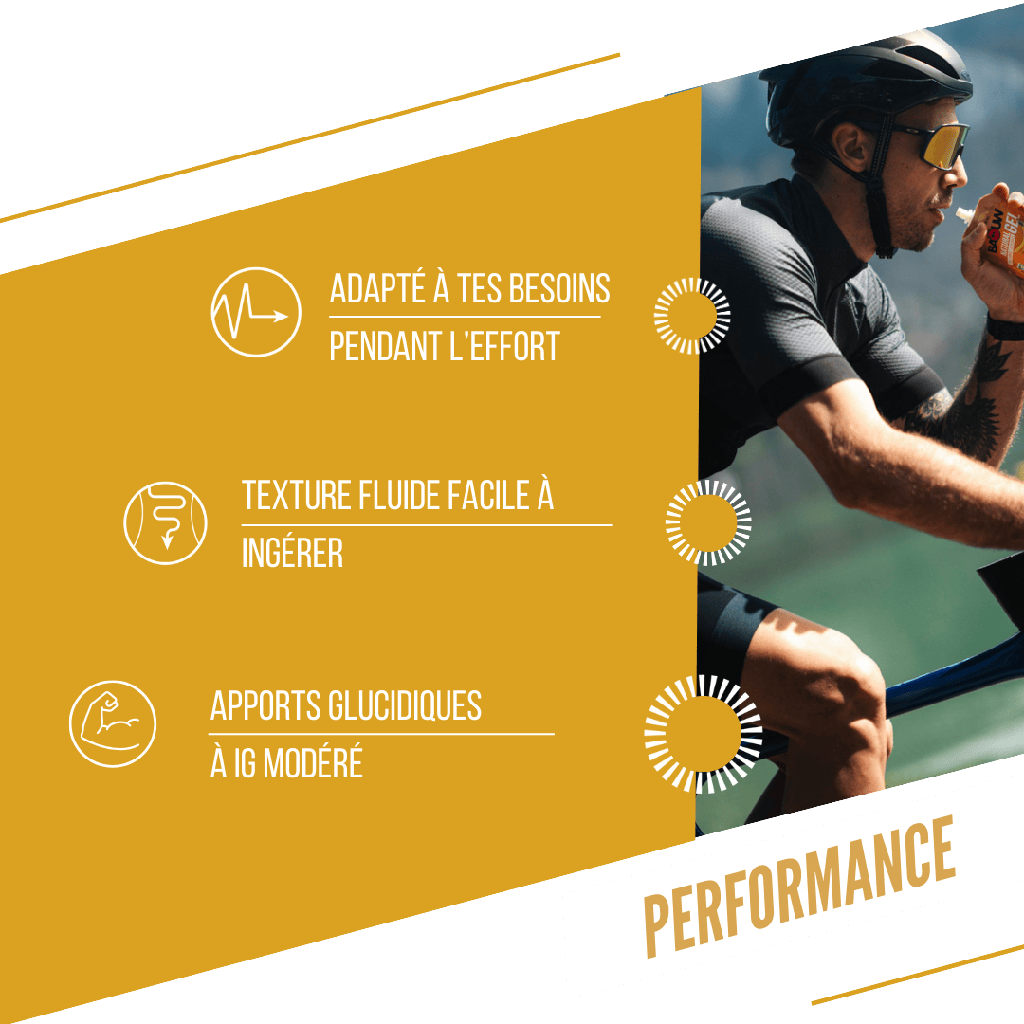 100 % biologisch, reich an FrüchteDieses Gel liefert natürliche Kohlenhydrate ohne glykämische Spitzenwerte, sowie wichtige Mikronährstoffe (Kalzium, Magnesium, Eisen, Kalium). Seine flüssige, nicht klebrige Textur vermeidet die Unannehmlichkeiten klassischer Gels. Seine wiederverschließbare Trinkflasche ermöglicht den Verzehr in mehreren Portionen oder verdünnt mit 500 ml Wasser als Energiegetränk.