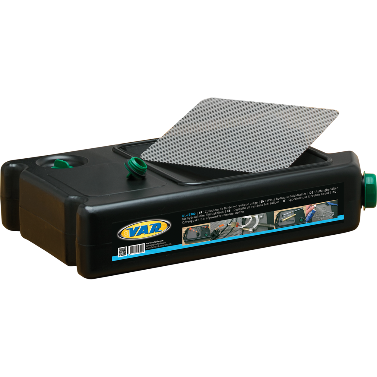 Der VAR NL-79300 Hydraulikflüssigkeitsauffangbehälter erleichtert das Auffangen gebrauchter Flüssigkeiten beim Entlüften von Bremsen, Entleeren von Gabeln und Entfettungsvorgängen. Er verhindert das Verschütten auf der Werkbank oder dem Werkstattboden.