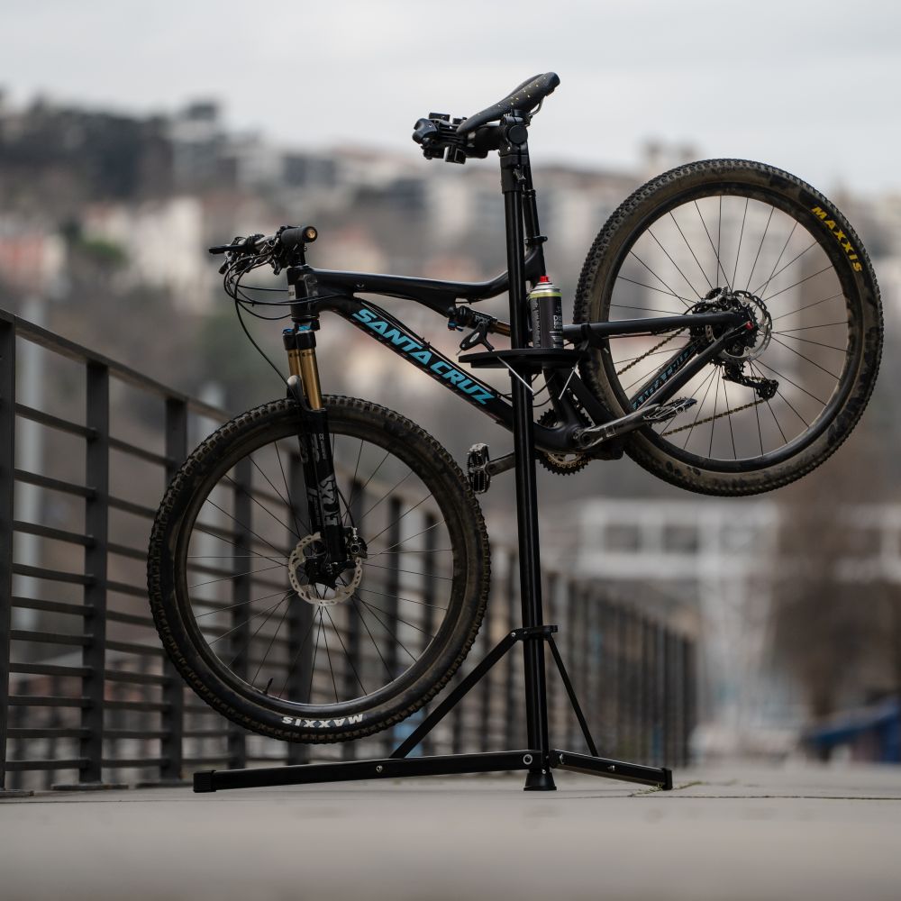 Der klappbare Werkstattständer von PBS TOOLS ist ideal für die Wartung Ihres Fahrrads zu Hause oder in der Werkstatt. Seine von 106 bis 144 cm einstellbare Höhe passt sich allen Bedürfnissen an, und sein werkzeugloses Design ermöglicht ein schnelles Aufstellen und Zusammenklappen.