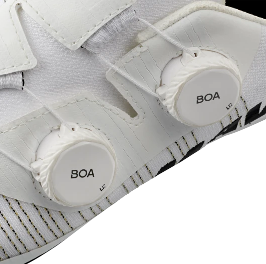 Dank der Verwendung von Matryx®-Garns aus Kevlar und Polyamidbieten diese Schuhe eine minimale Dehnung für eine optimale Kraftübertragung. Die brandneue Sohle aus 100 % Carbon sorgt für extreme Steifigkeit und garantiert maximale Energieübertragung bei jedem Pedaltritt. Das System BOA® Fit mit Li2-Rädern ermöglicht eine feine, schnelle und reversible Anpassung für einen perfekten Sitz unter allen Bedingungen.