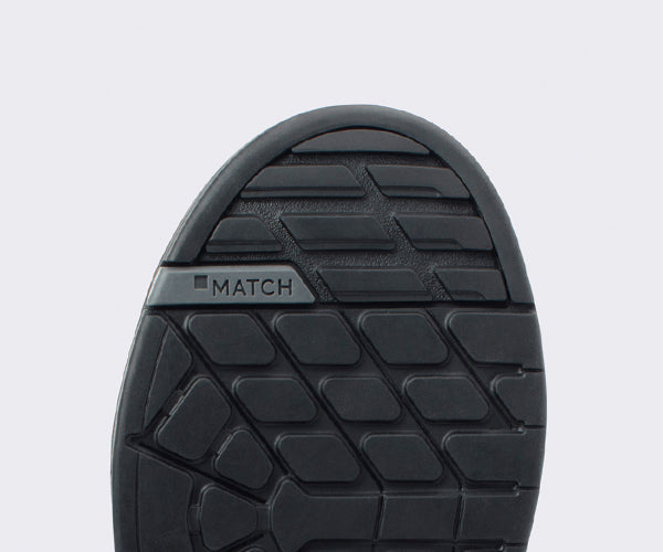 Die Match MC2-Gummimischung ist so konzipiert, dass sie einen hervorragenden Griff bietet und gleichzeitig langlebig ist, mit vibrationsdämpfenden Eigenschaften und Abriebfestigkeit. Das Muster der Sohle ist so gestaltet, dass es sowohl auf dem Fahrrad als auch zu Fuß maximale Traktion bietet. Die direktionalen Stollen an Zehen und Fersen bieten optimale Traktion beim Wandern in steilem Gelände.