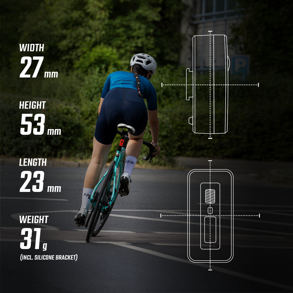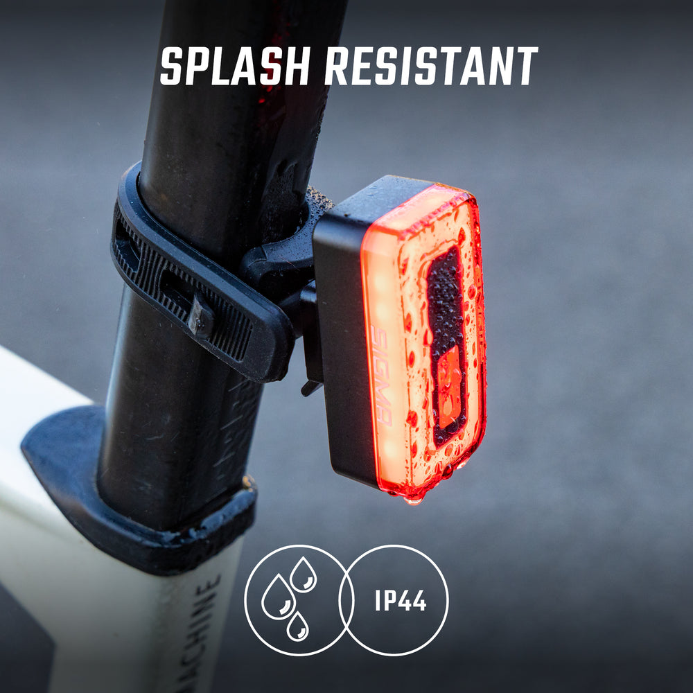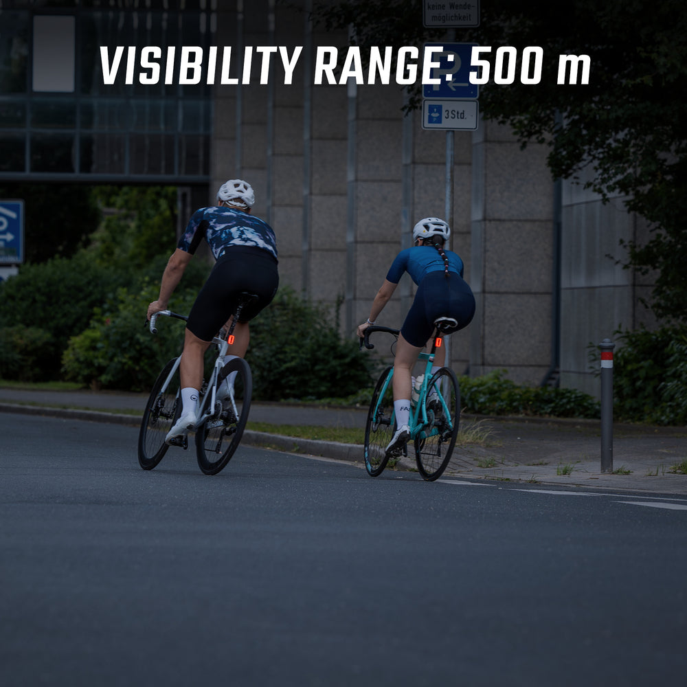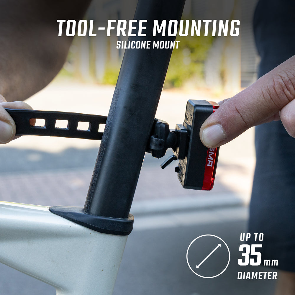 Das Rücklicht wurde für Radfahrer in der Stadt entwickelt und lässt sich dank des Silikonstreifens schnell und ohne Werkzeug an jeder Sattelstütze befestigen. Es ist nach IP44-Standard wasserdicht, spritzwassergeschützt und begleitet deine Fahrten bei allen Wetterbedingungen.