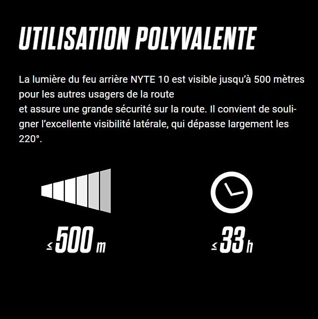 Es ist praktisch und robust und verfügt über eine dreistufige Batterieanzeige, damit Sie nie unvorbereitet sind. Das NYTE 10 ist nach IP44 spritzwassergeschützt, begleitet dich bei jedem Wetter und erhöht deine Sicherheit auf jeder Fahrt.